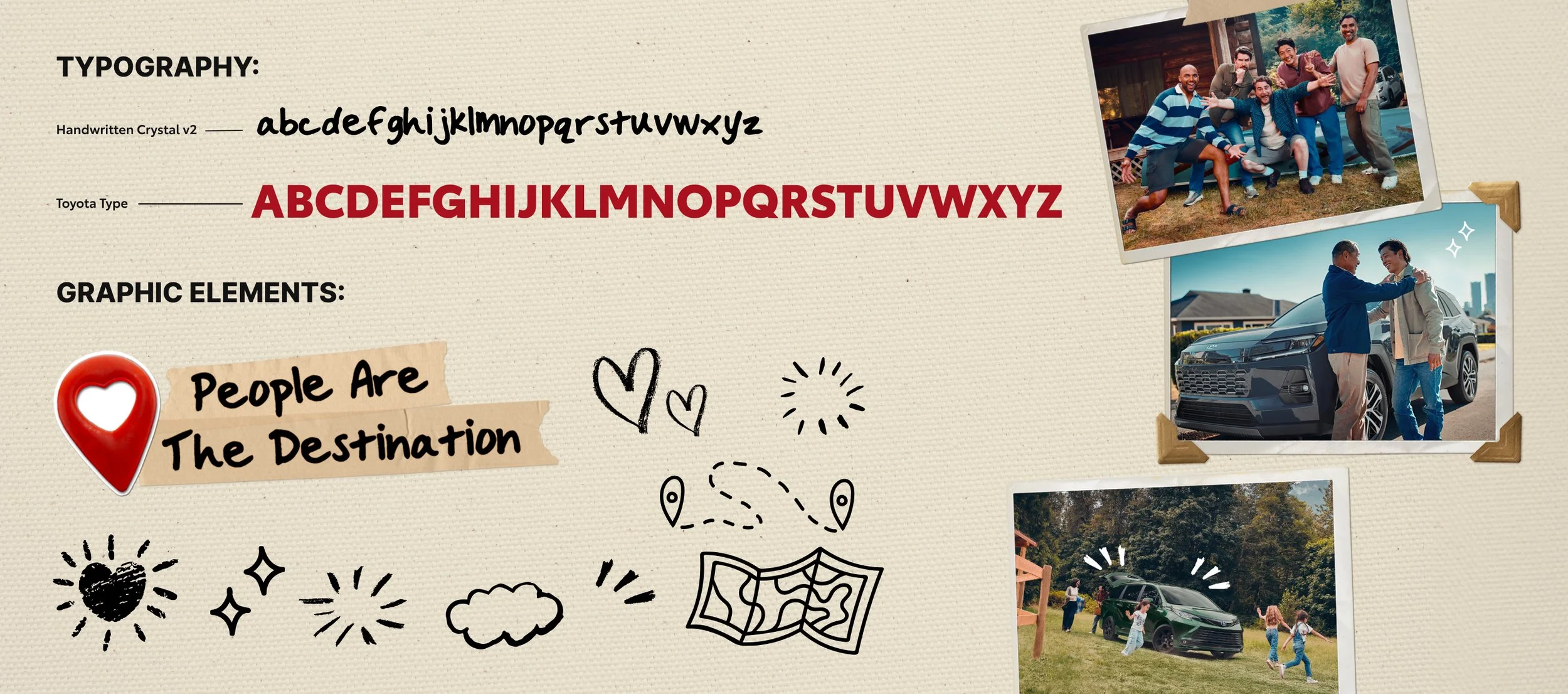 Toyota guidelines are strict about the official font usage, but I was able to bring a human touch, adding a hand-written/marker typography style to the campaign tagline and some headlines.
