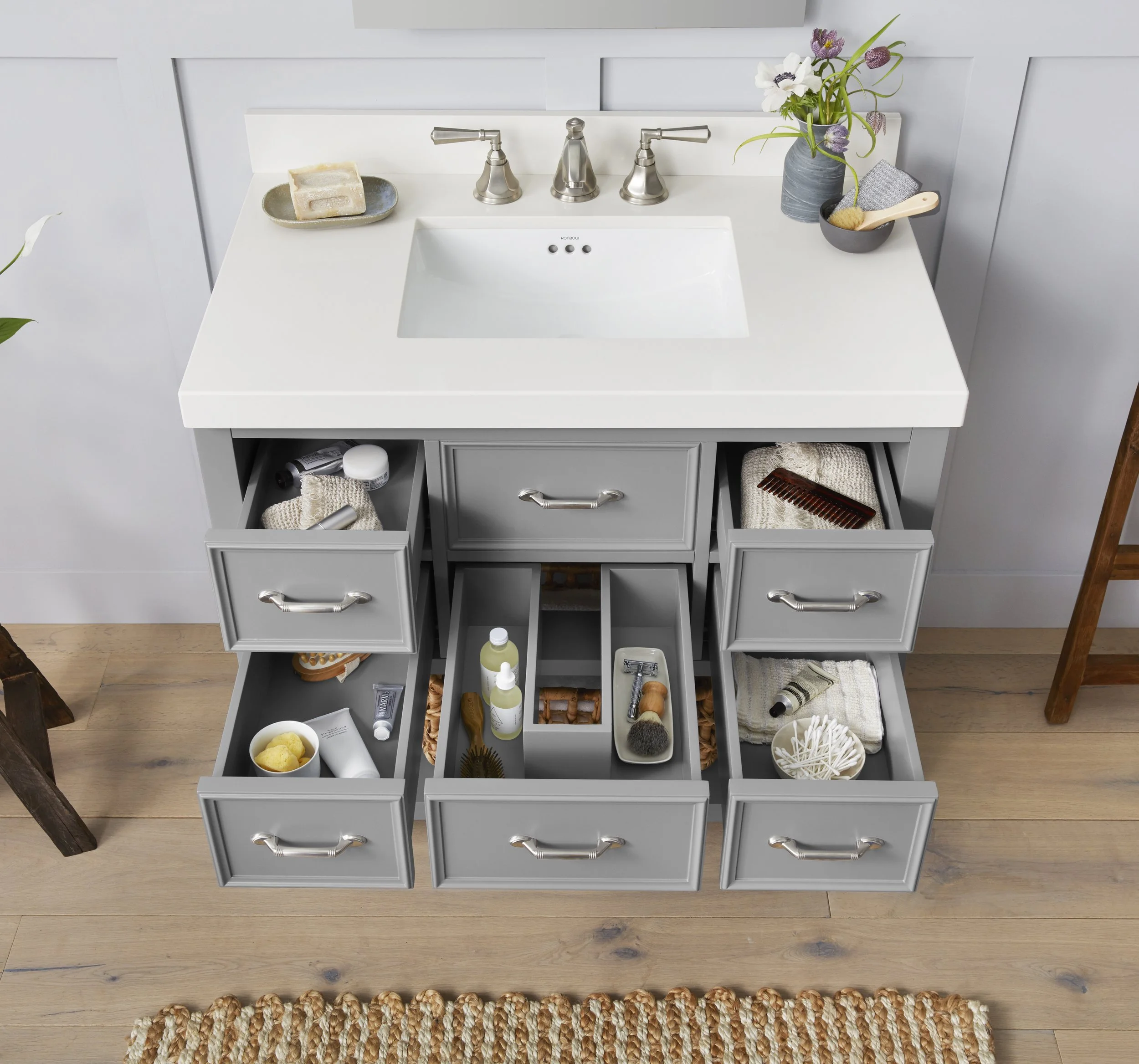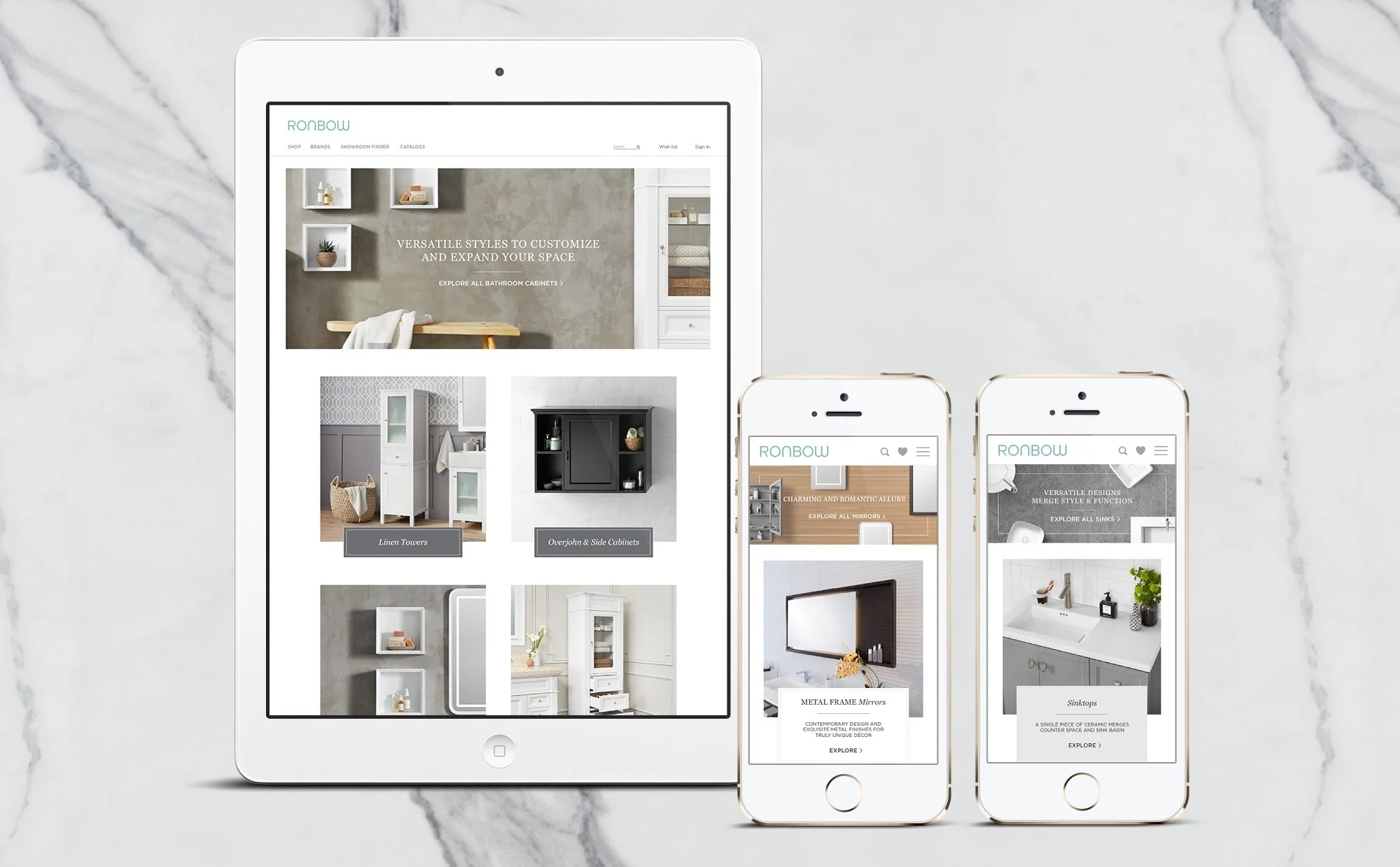 Ronbow sells a lot of furniture across 3 brands in different styles and dimensions (vanities, side cabinets, drawers, wall cabinets, sinks, sinktops, etc.). Getting the hang of all the options could be overwhelming; that’s why we were losing potential clients, they could’t understand how all the products fit together and find what they needed.